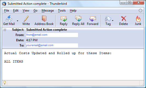After the job is completed successfully, the user who submitted the job will receive a confirmation email from the Batch Manager indicating the time of completion and any related notes. The following screenshot shows a sample confirmation email: