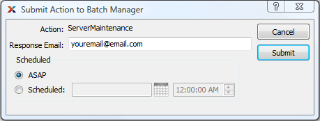 To schedule Server Maintenance and submit the job to the Batch Manager, follow these steps: