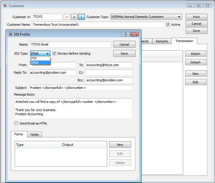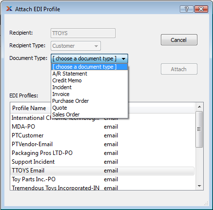 In the "EDI Profile" window that appears, select "Email" from the list of EDI Types