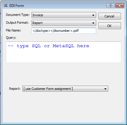As you can see in our example, all the details from the EDI Profile we defined earlier have been transferred to the email message. Notice how in several places the </doctype>, </doctypefull>, and </docnumber> token have been replaced by the values "IN", "Invoice", and the actual Invoice Number. You may at this point manually edit the email body if you want to change the default information displayed there or choose a different invoicing report. Any edits made to the email body will be included in the email to the Customer. However, if you want to make permanent changes to the default outgoing message, you need to make those changes on the EDI Profile.