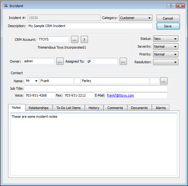 At this point, the configuration steps are all done. Now we can create a simple CRM incident—and follow it through to email delivery. The Incident screen contains a multitude of fields. But for this exercise, we are only going to fill in the minimum necessary—so we can save our example and submit it to the Batch Manager. To begin, follow these steps: