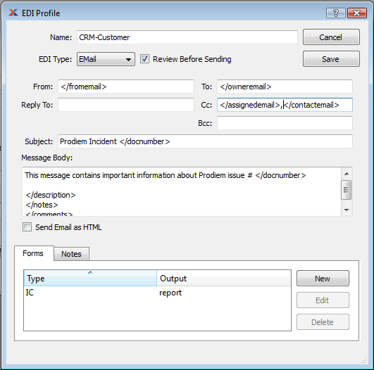 Now that we have reviewed our EDI Profile, we need to configure the CRM Module to send emails for CRM Incidents. Follow these steps if you want to send email for all Incidents: