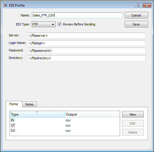 We'll start with the Quote. To add an EDI Form for Quotes to our Sales_FTP_CSV profile, follow these steps: