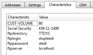 If you read the 7, you'll know that it looks for four characteristics associated with the Customer: ftpserver, ftplogin, ftppassword, and ftpdirectory. These do not yet exist in the database, so we have to add them: