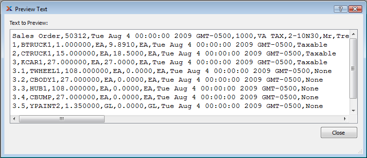 If you want to see what the CSV file will look like when it is sent, click the PREVIEW button: